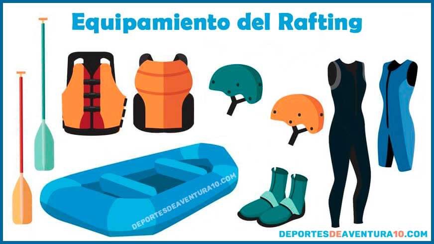 Balsa, casco, remo, traje de neopreno, calcetines de neopreno y chaleco salvavidas.